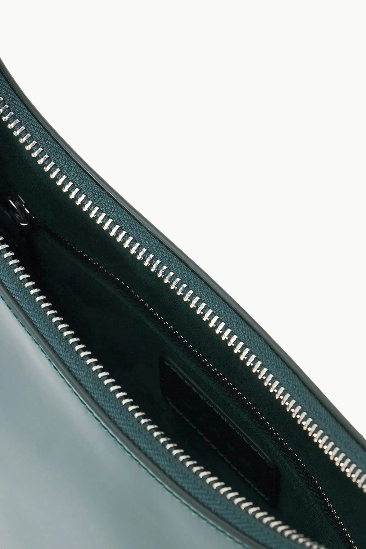 Our best-selling Alec bag, updated in a seasonal Pine green. The Alec Bag features minimal silver hardware details and suede lining. This style is made out of a polished leather.