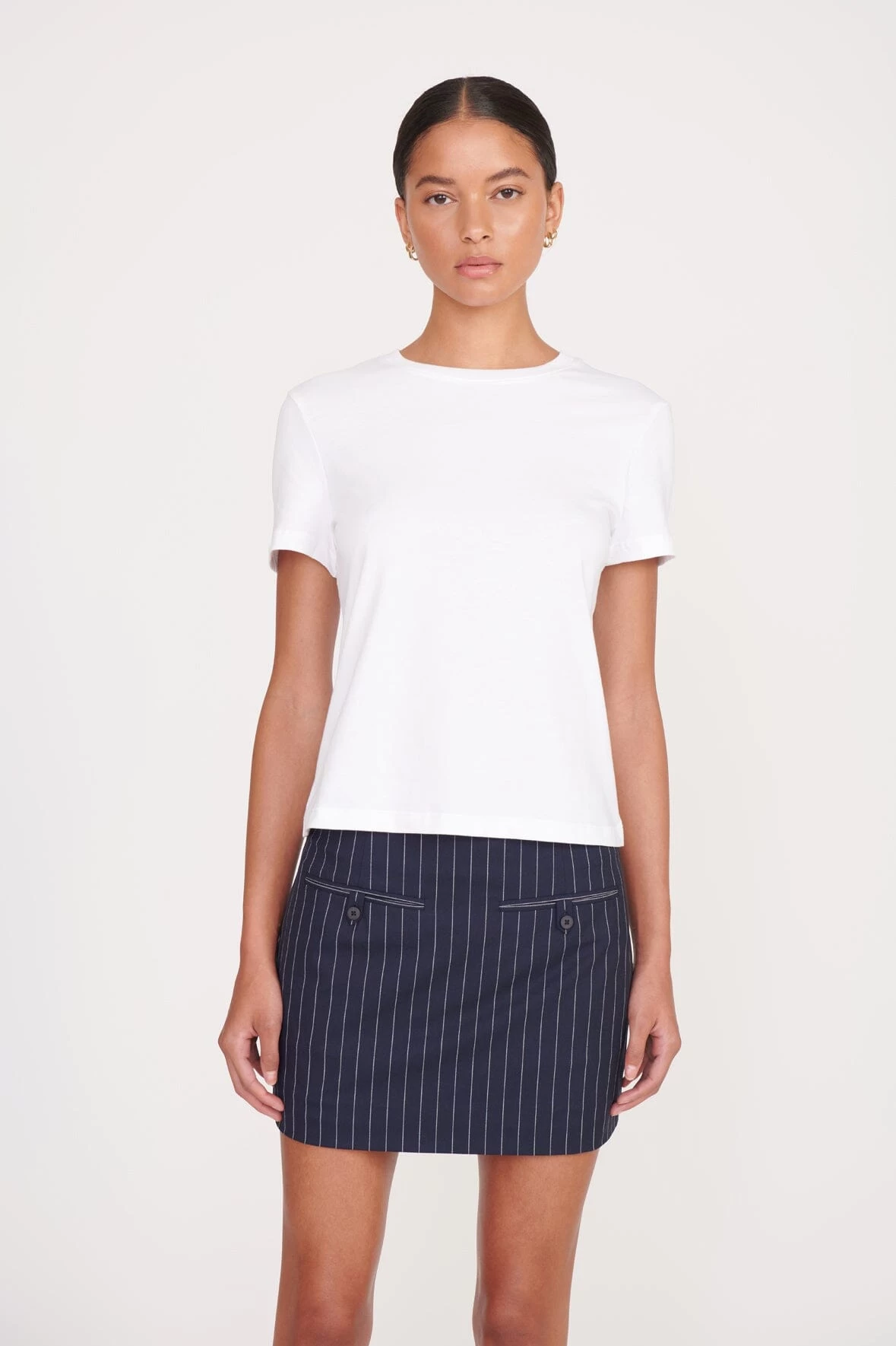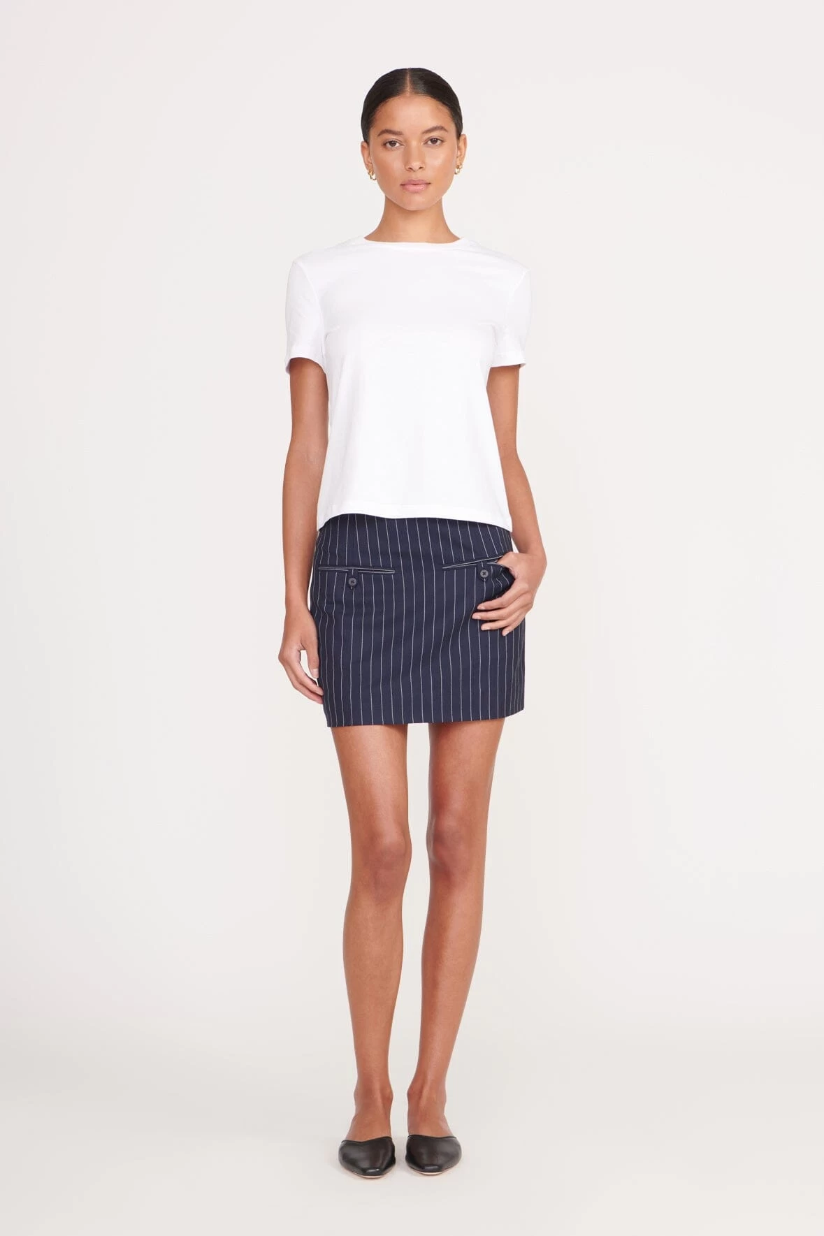 A mini skirt suiting made out of a suiting fabric, the Annette features double welt front pockets and flat back.