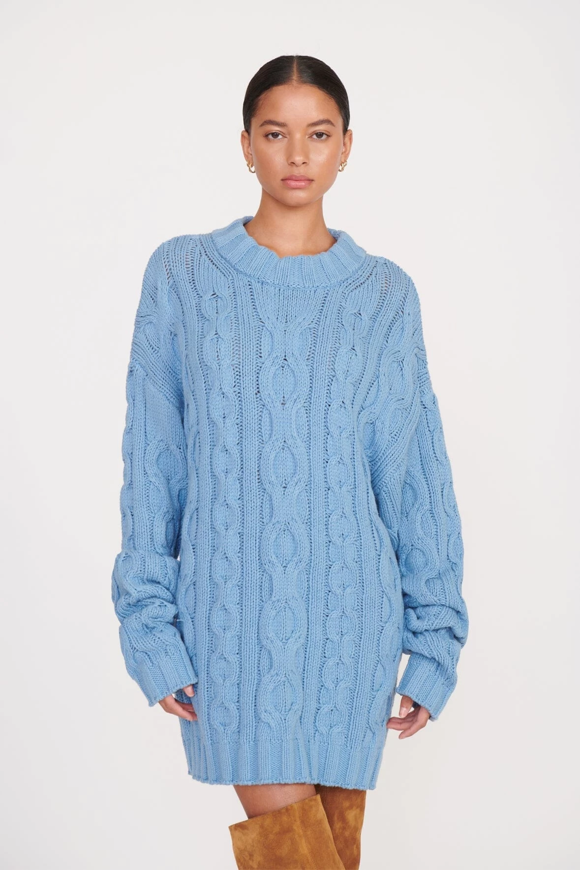 An oversized chunky sweater with a honeycomb cable knit. Can be worn as a mini sweater dress or an oversized sweater.