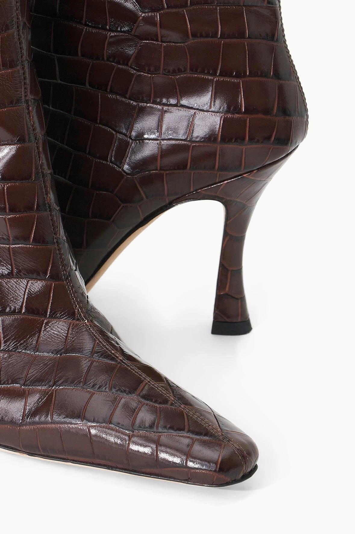 An updated high heel boot in rich bold croc-embossed leather. The Cami can be dressed up for night or worn casually during daytime.