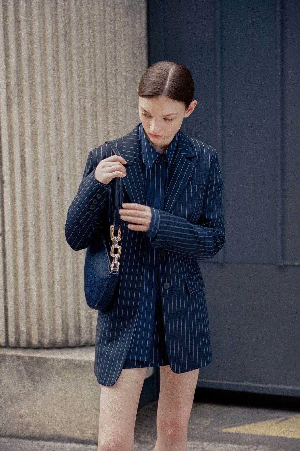Leather Shoulder Bag in Navy