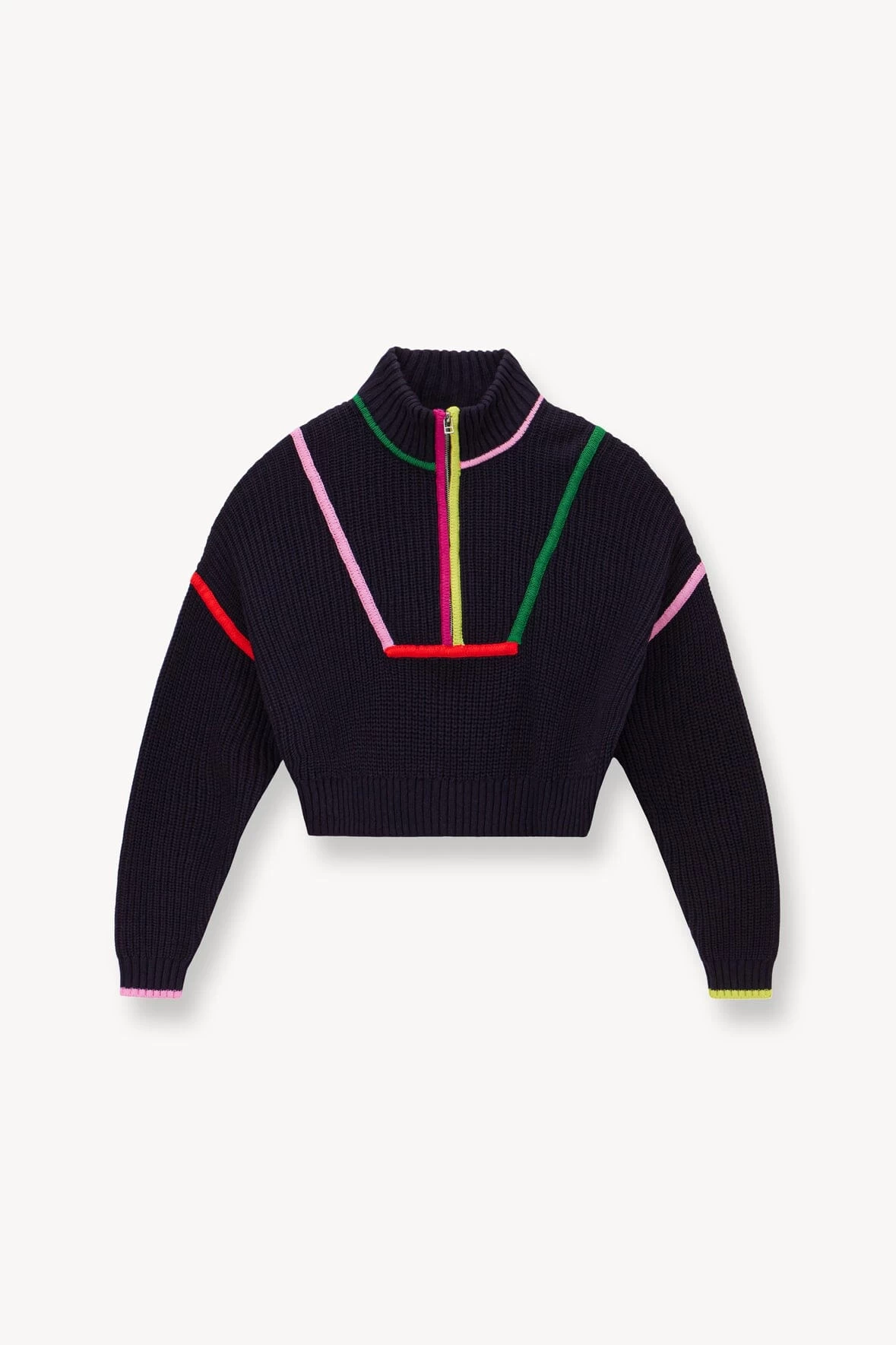 A cropped update to our best-selling sweater. This style is made from chunky cotton knit with half zip detail down the front.