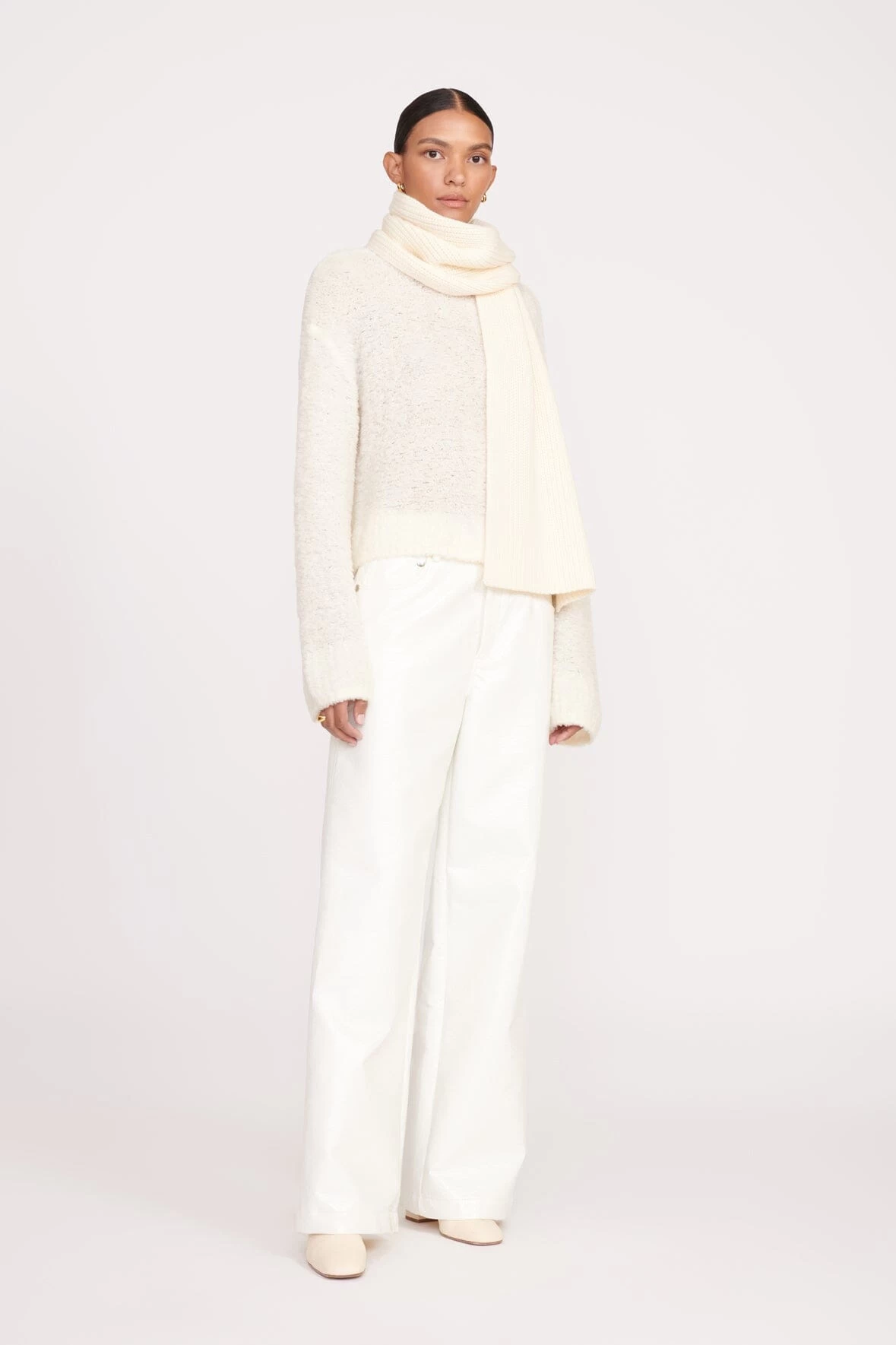Our Knit Scarf is crafted in soft merino wool for easy Fall layering under the Carver Coat and atop a sweater.