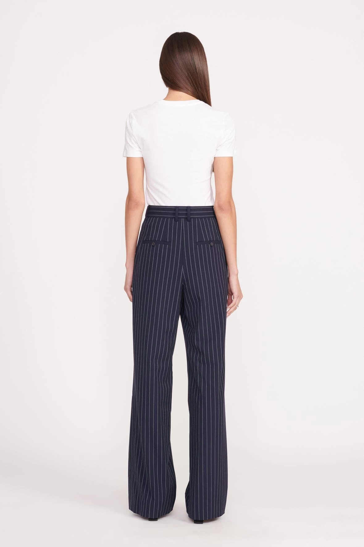 A classic pinstripe update to our wide leg pleated trouser, this style completes a suit when worn with the matching City Blazer.