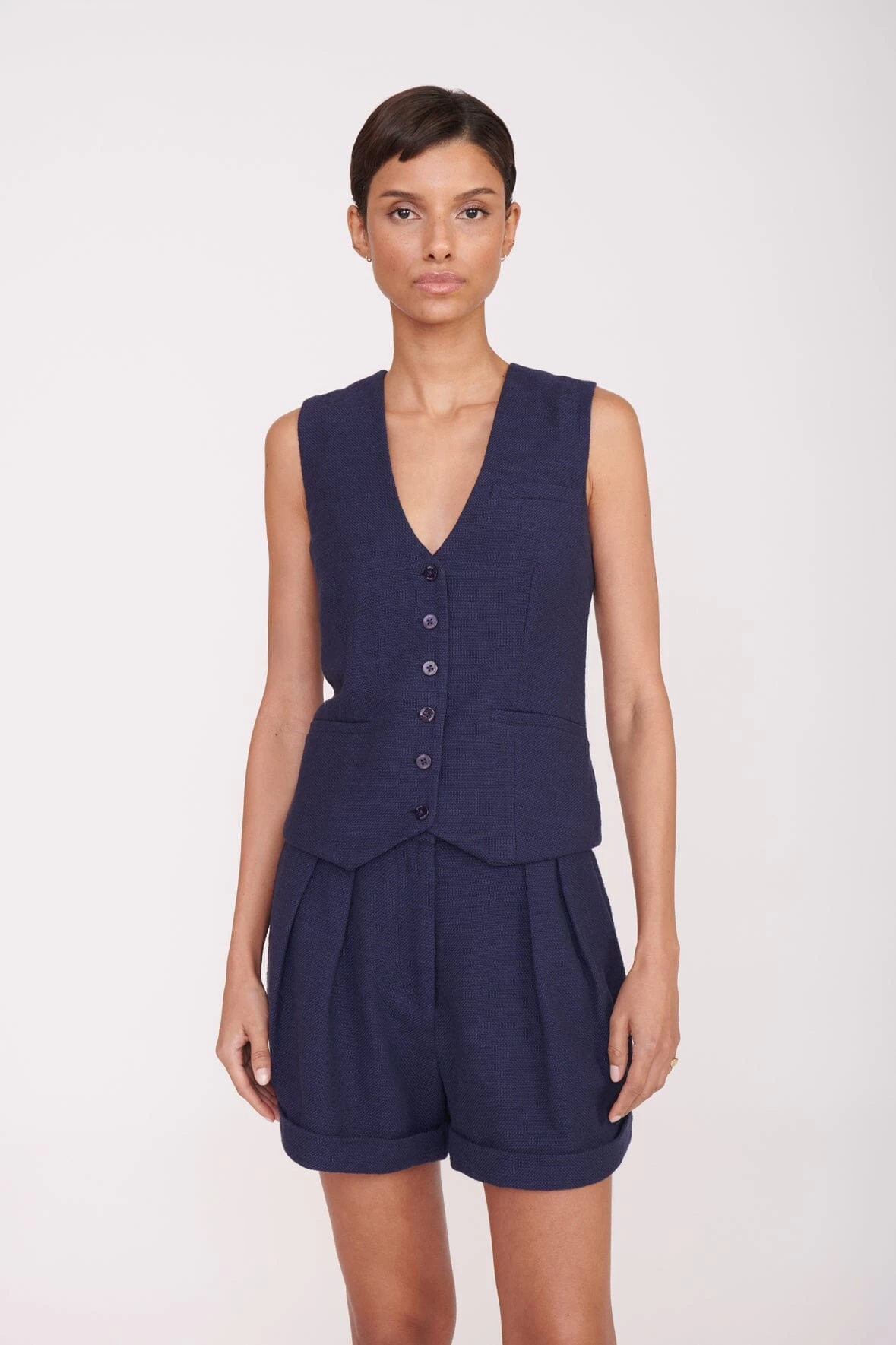A tailored, high-waisted pleated short based on our Luisa Pant. The Luisa Short is made out of a suiting fabric and features a hook and zip closure.