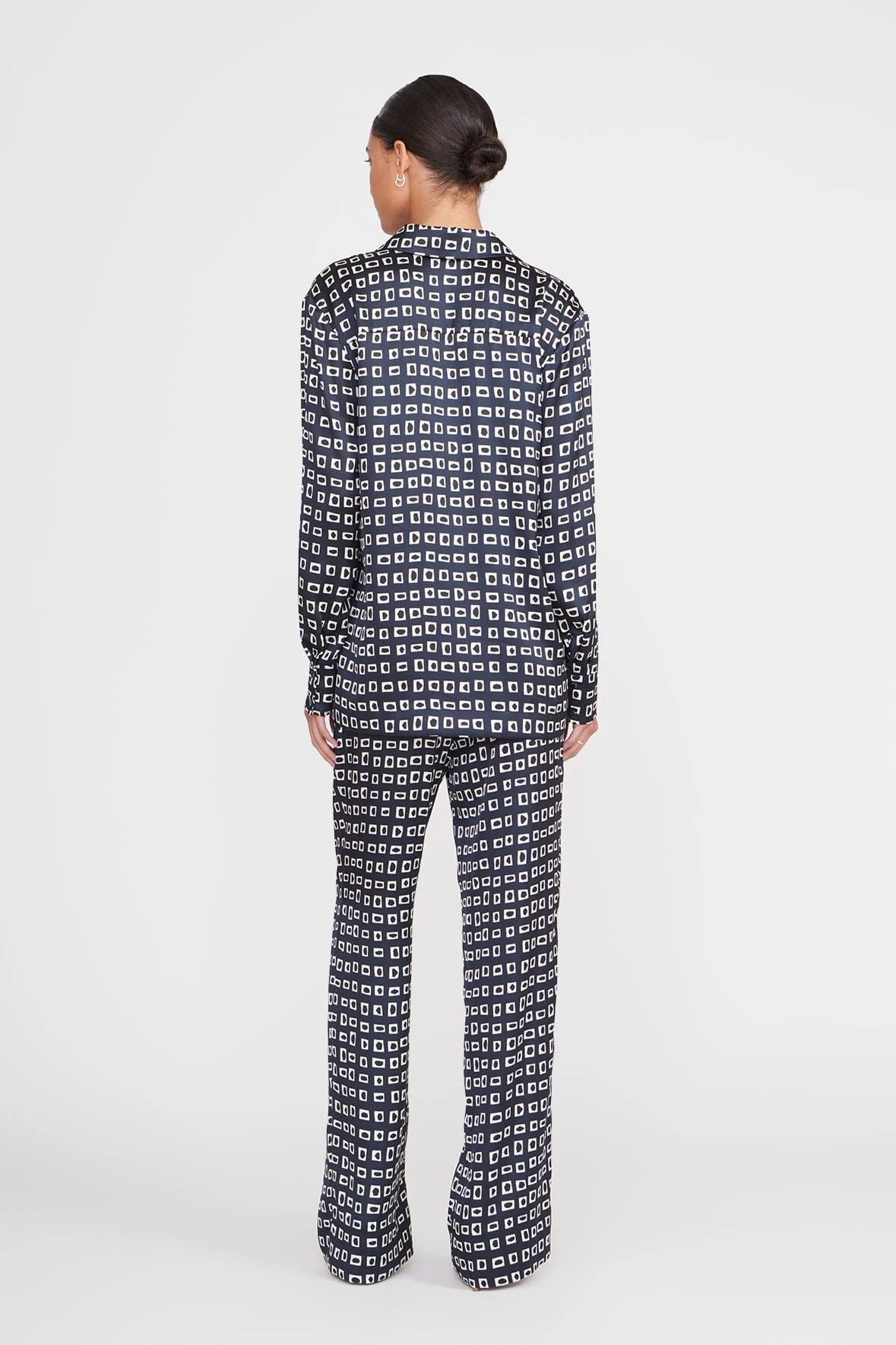 Oversized button down shirt featuring an all over geoscape surface-inspired pattern.