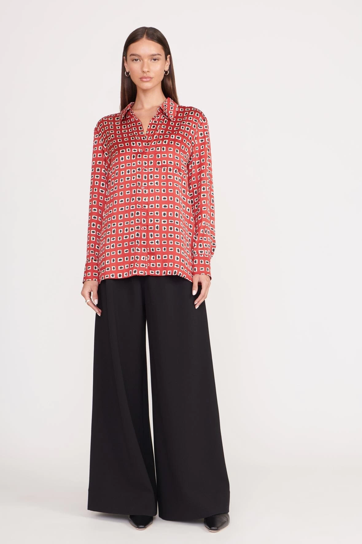 Oversized button down shirt featuring an all over geoscape surface-inspired pattern.