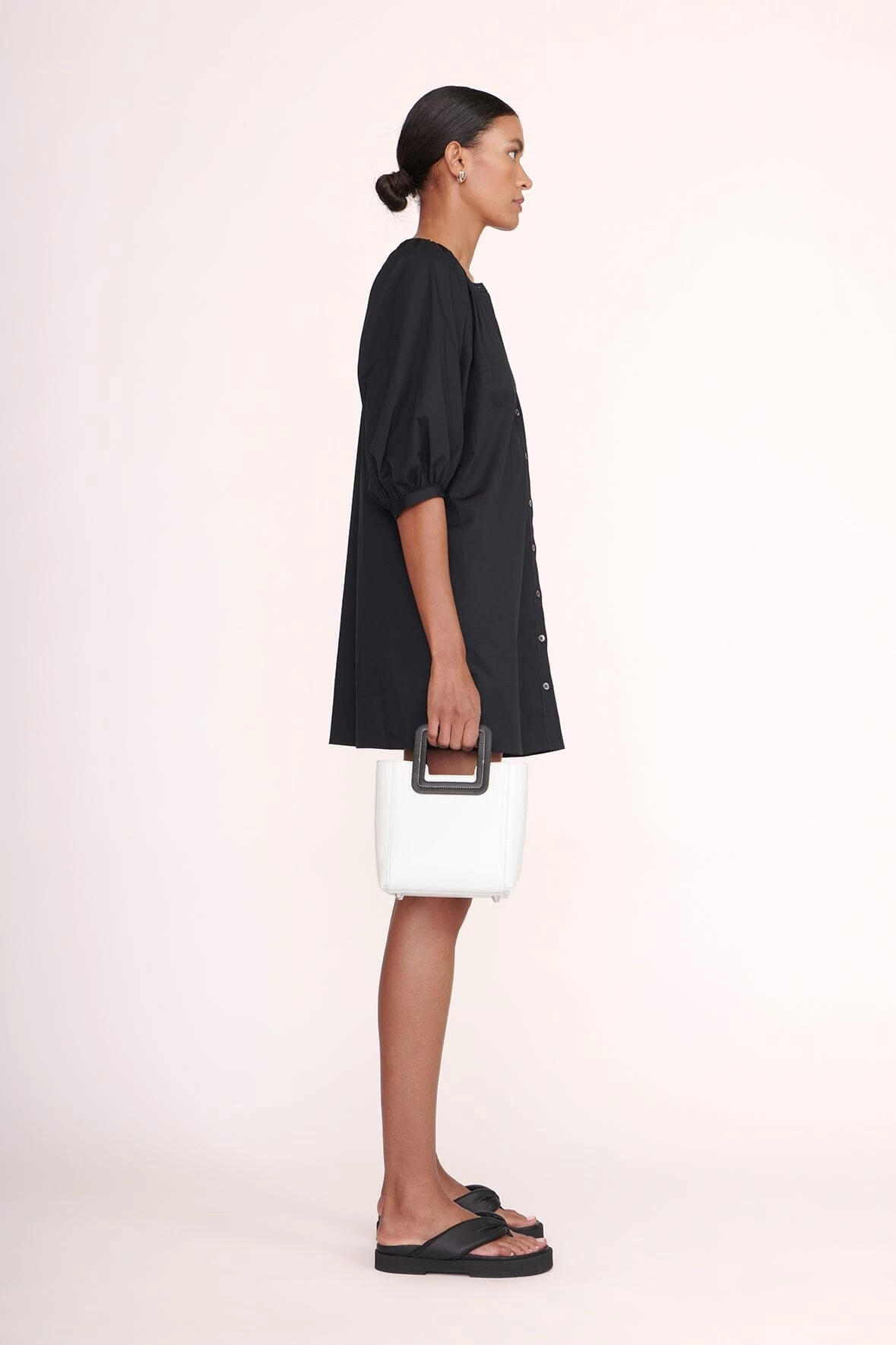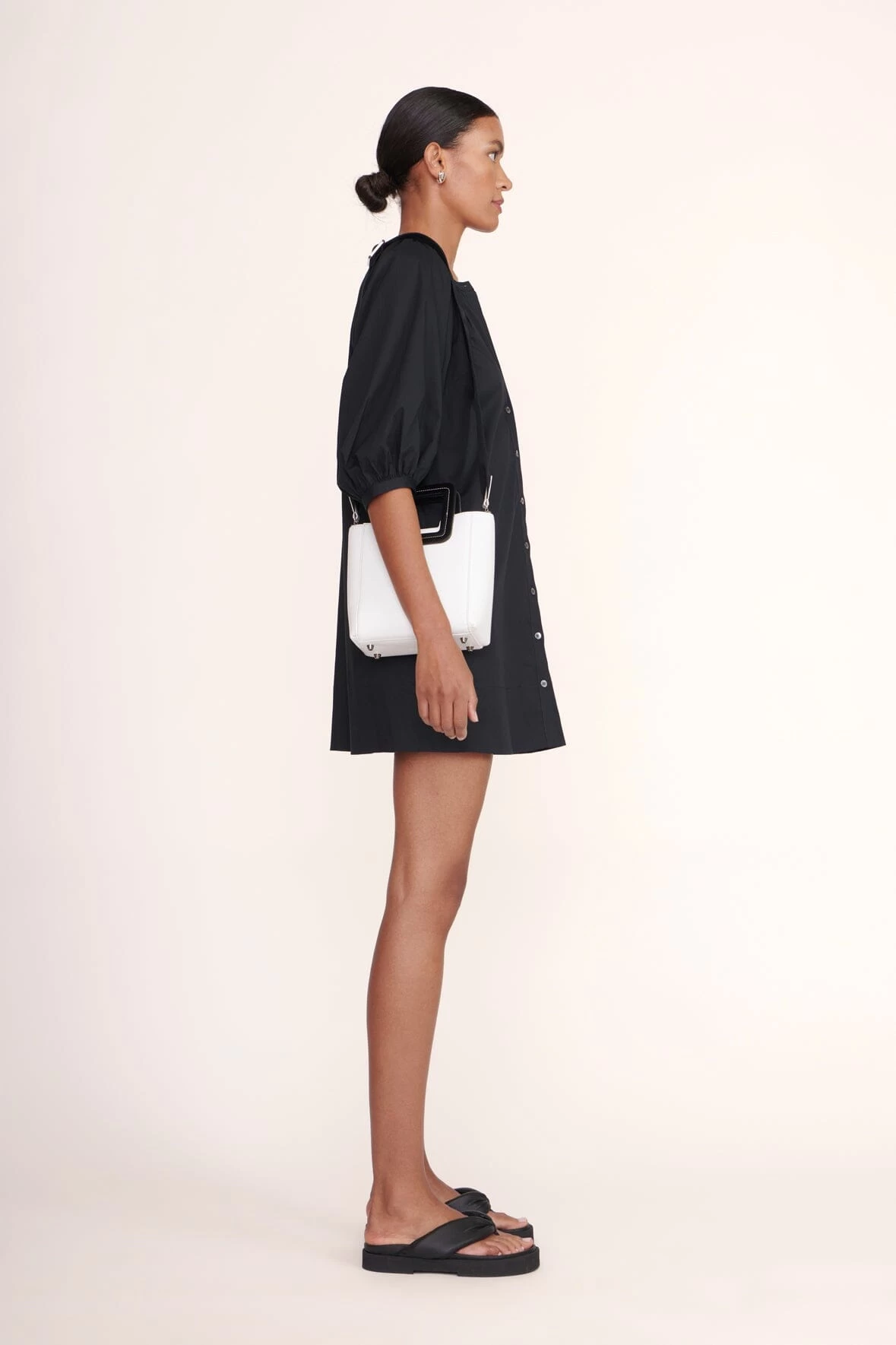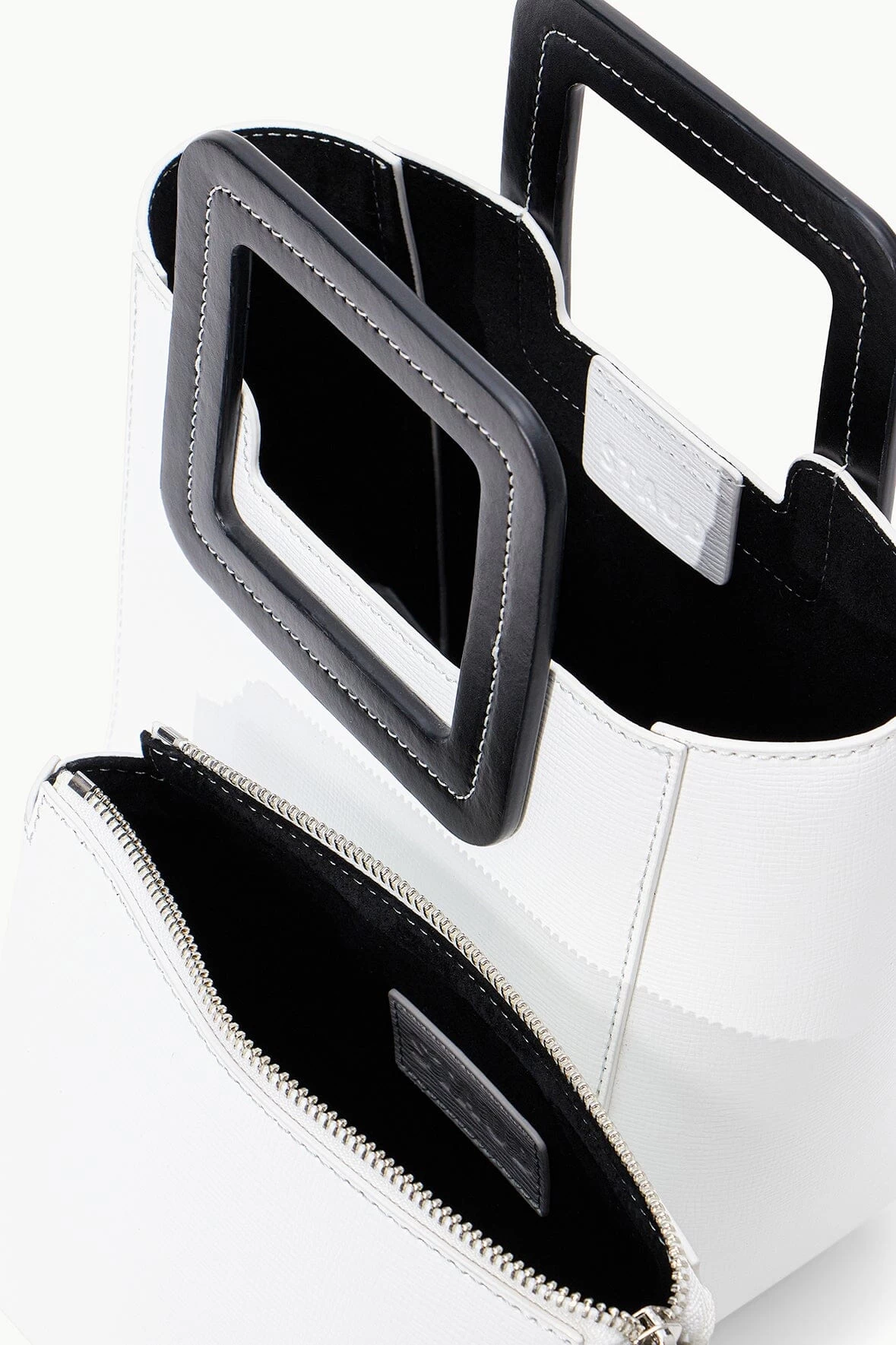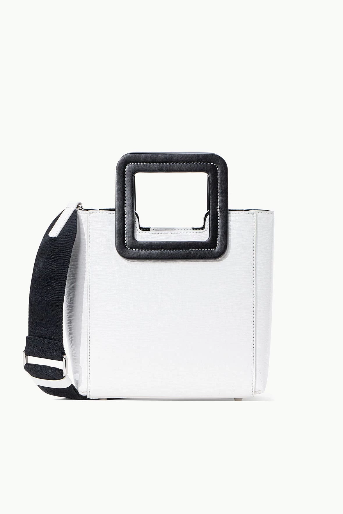 The classic Mini Shirley in a seasonal color-blocked strap update. This style features a leather outer, removable crossbody strap and inner suede lining.