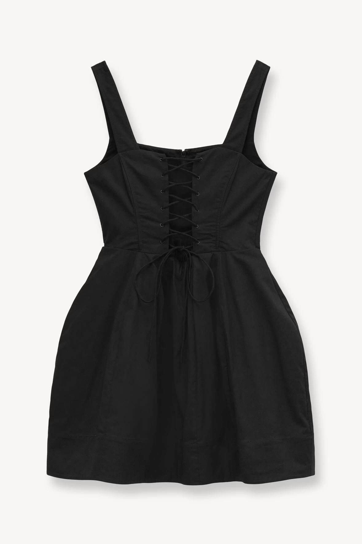 New for the season in stretch poplin, the Mini Sutton is a babydoll style dress with lace up corset detail.