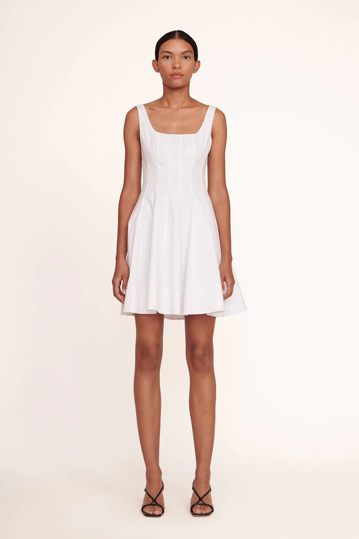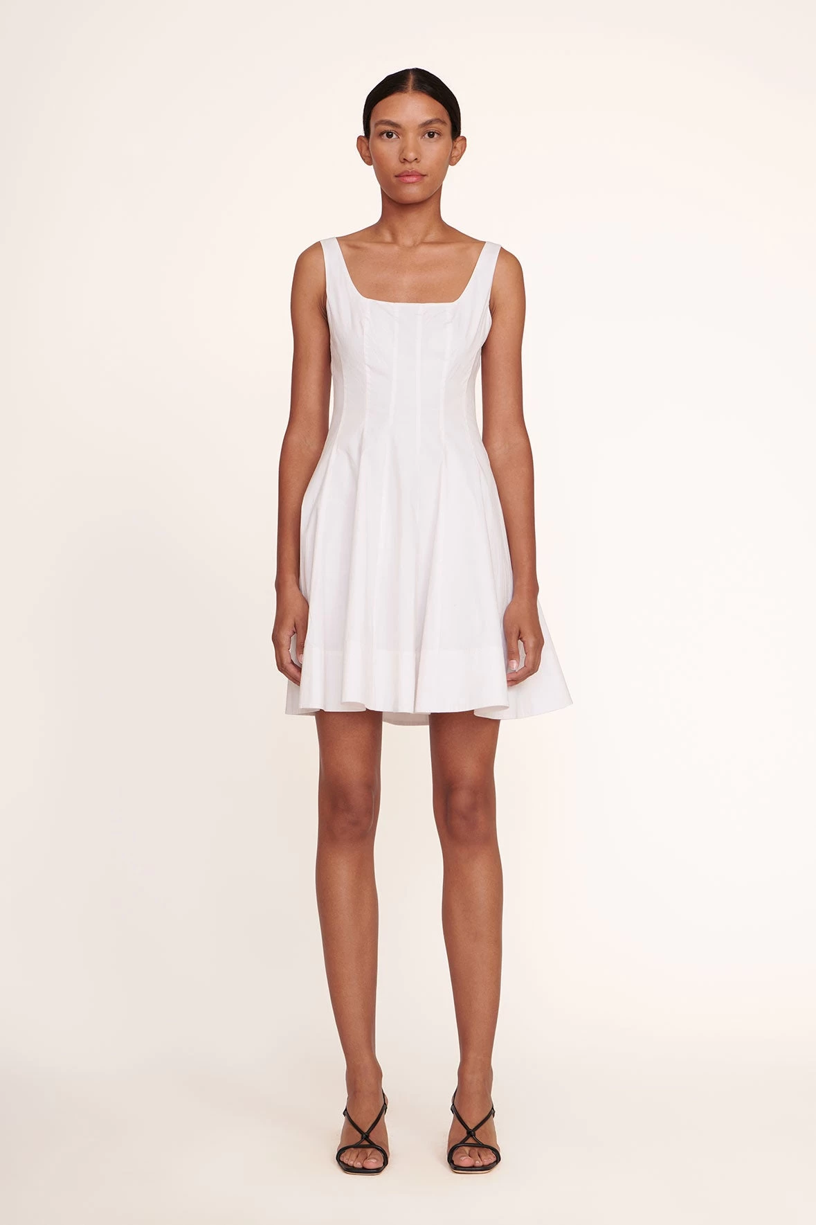 Our classic Wells Dress in a ‘mini’ update for summer. The Mini Wells Dress features a corset-style panel construction to create a flattering, fitted shape through the waist and a mini-length a-line skirt. Made out of lightweight cotton poplin.