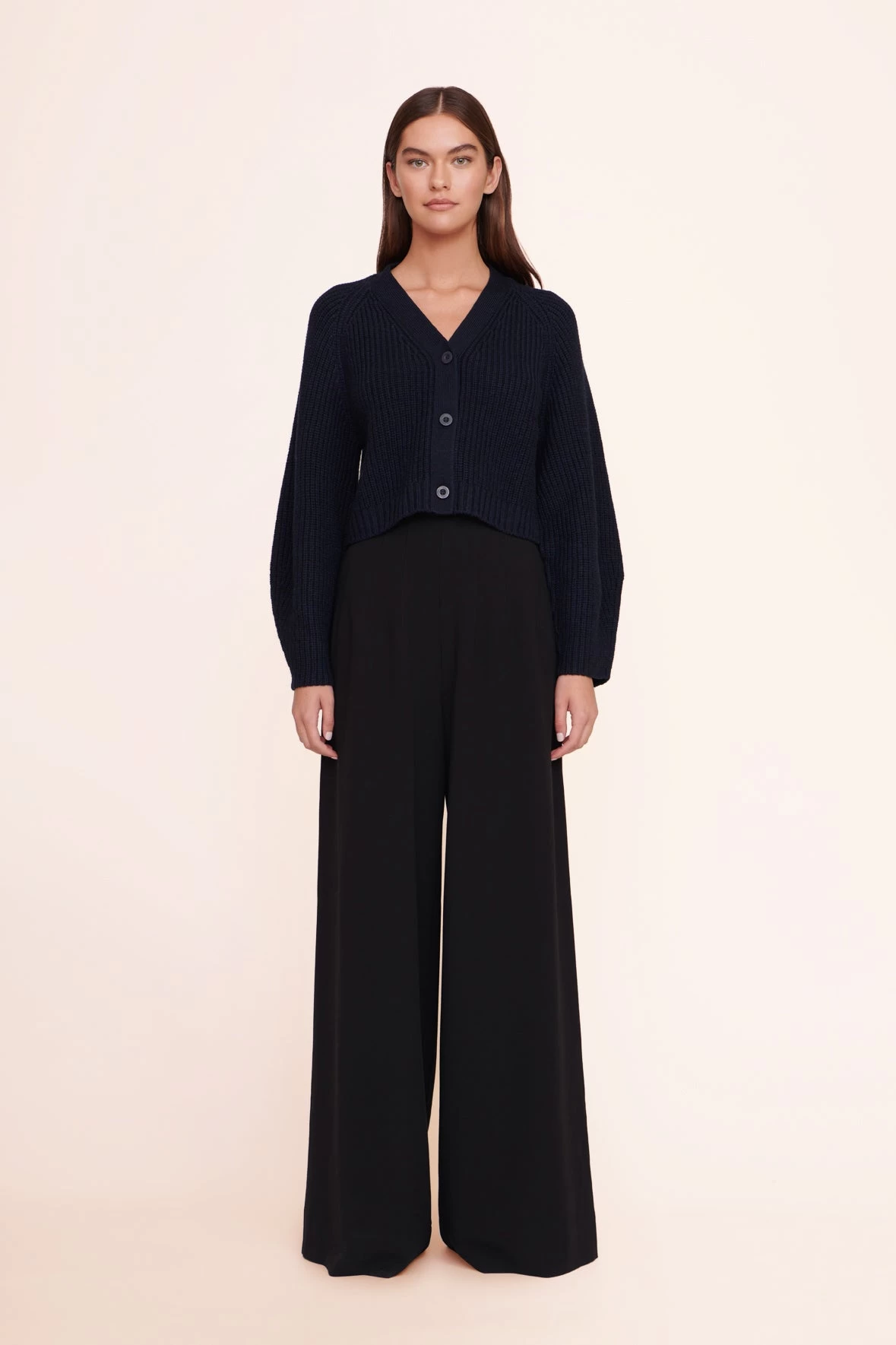 A soft, chunky knit made out of merino wool. The Mirabel Cardigan features a v-neckline with fully fashioned marks and raglan sleeves.