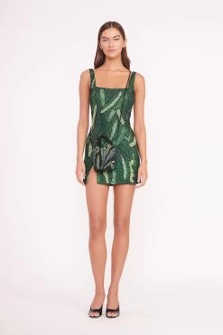 A handheld leather bag constructed of four leaf-shaped panels. The Palm Bag features two handheld straps and a magnetic closure.