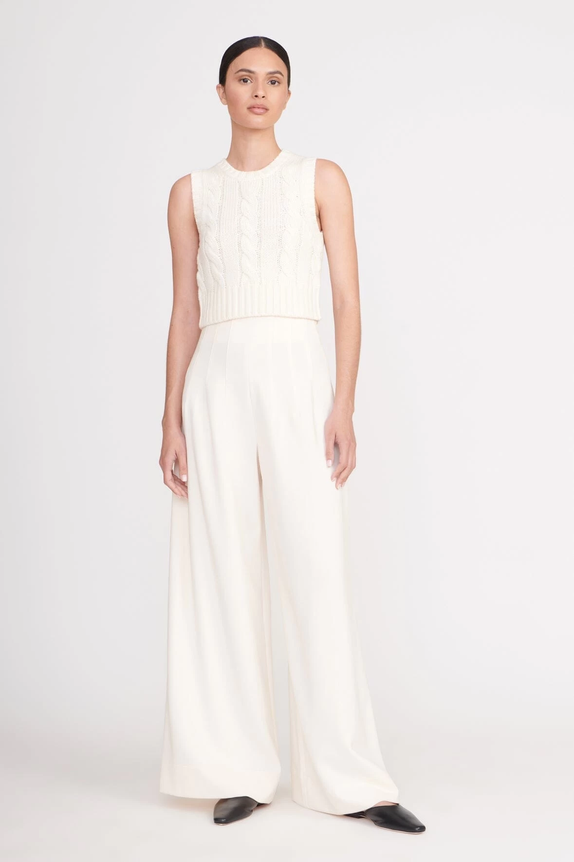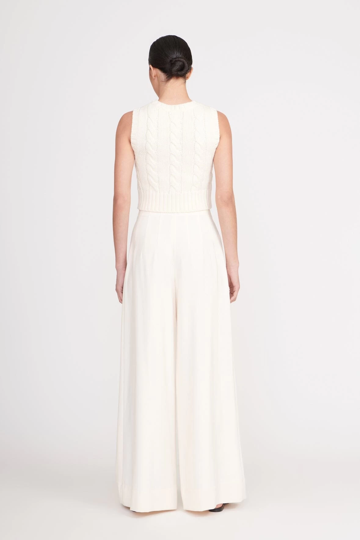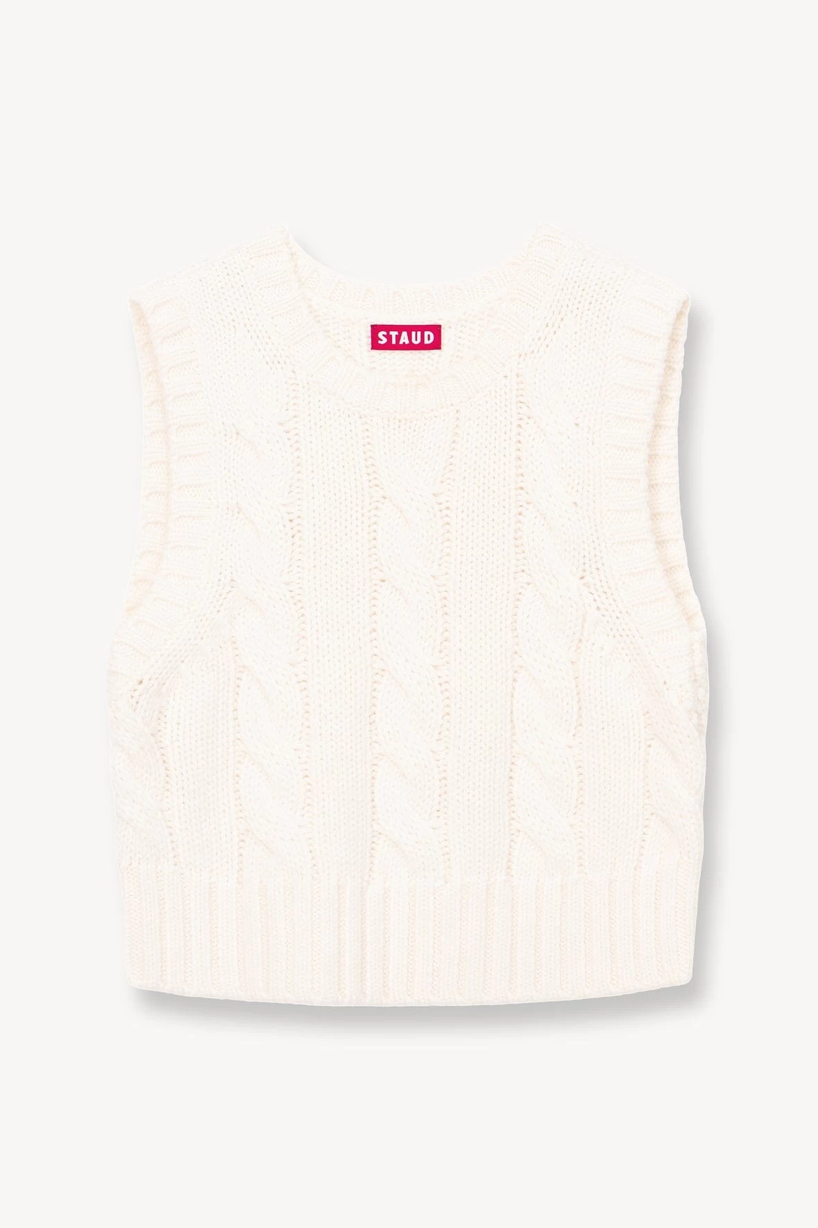 A cable knit sweater fashioned as an easy layering piece, this style offers a cropped silhouette for added versatility in your wardrobe.