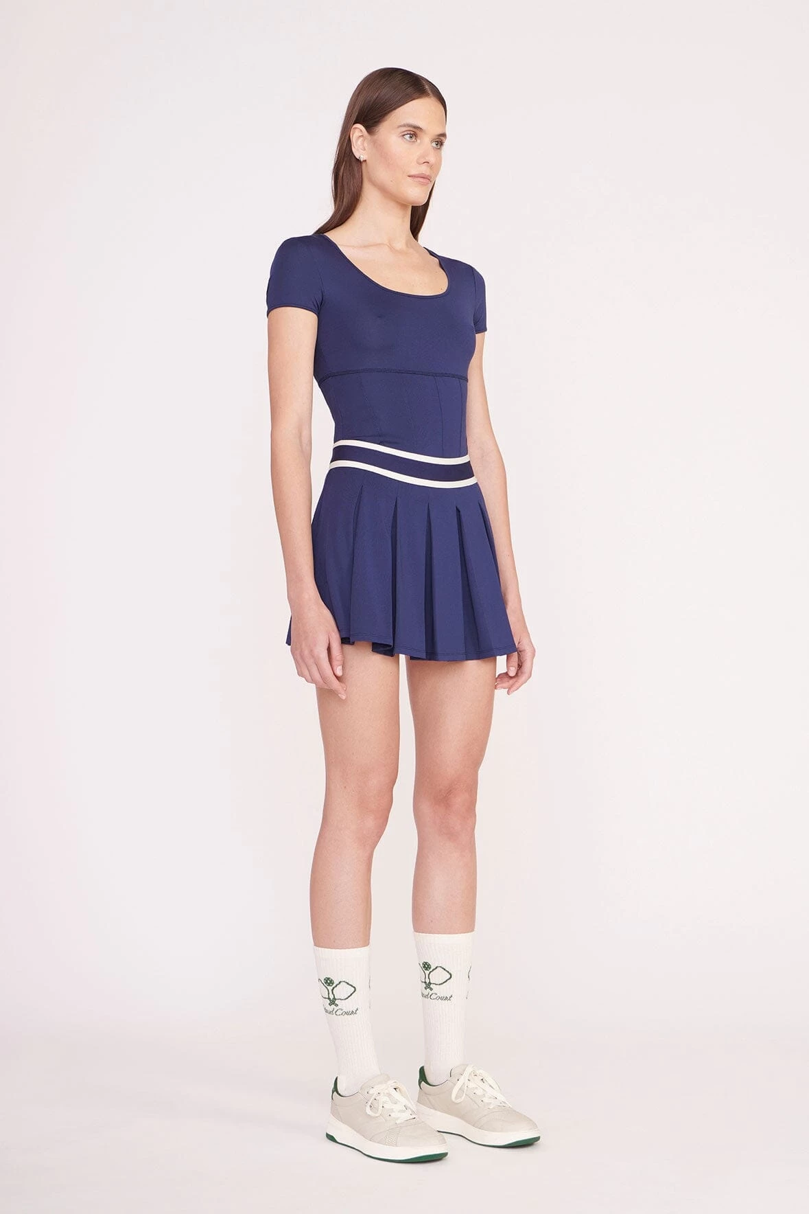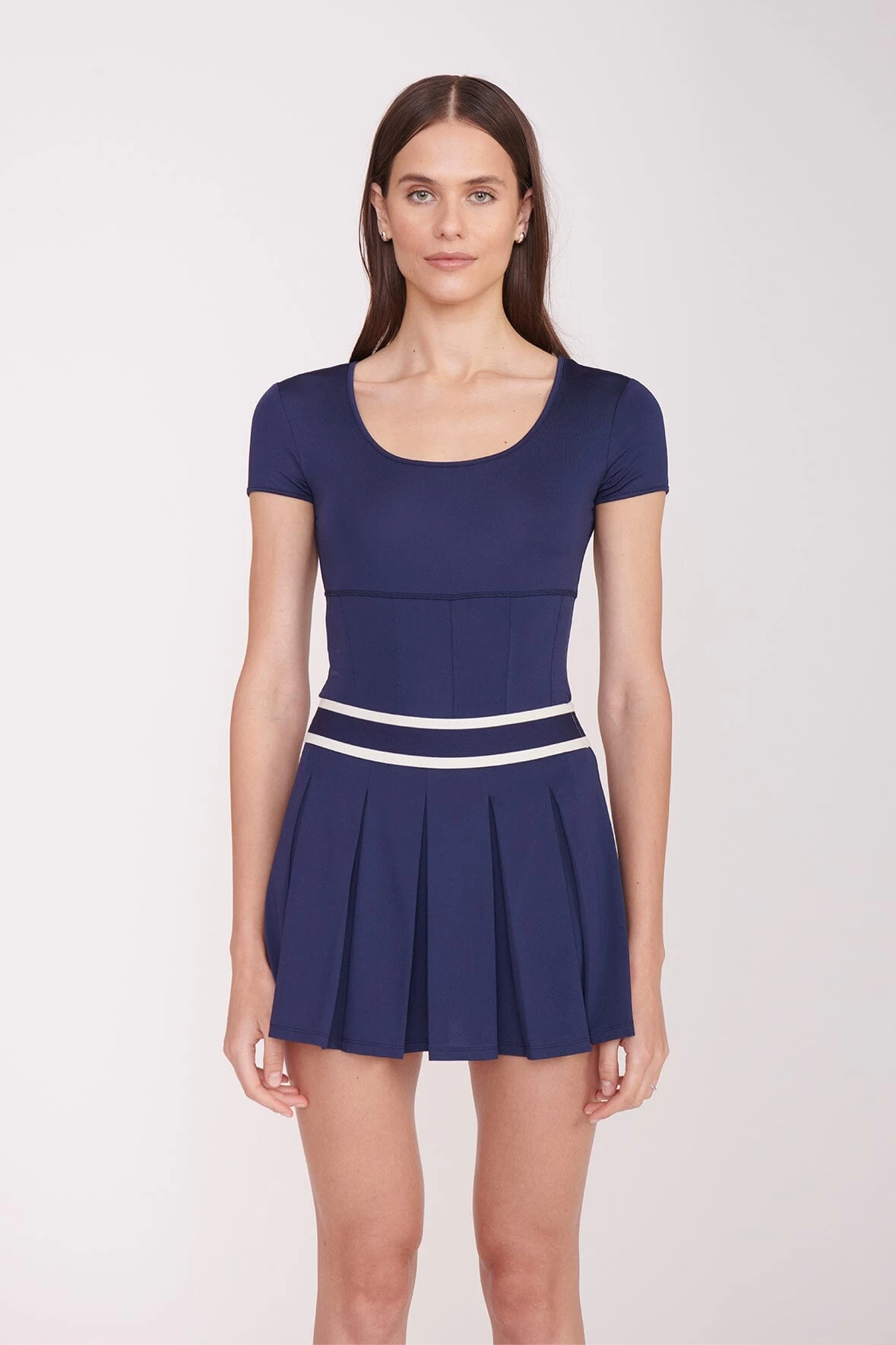 A scoop neck fitted tee with corset seaming, the Replay Top features moisture-wicking fabric technology to help you stay dry and comfortable on and off the court.