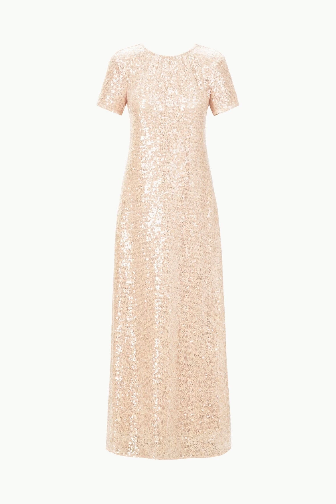 The Safi Dress is inspired by our best-selling Ilana Dress, reimagined with a simple round neckline, short sleeves, and a scoop back. This dress is crafted in all over lace, with clear sequin embellishment on top.