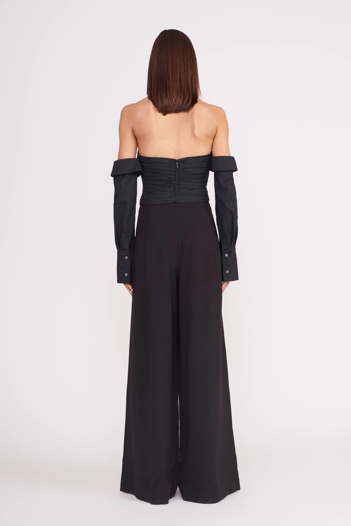 A strapless corset top made out of our slightly stretchy cotton poplin fabric. This style features fully removable sleeves, pointed cup details and a gathered bodice.