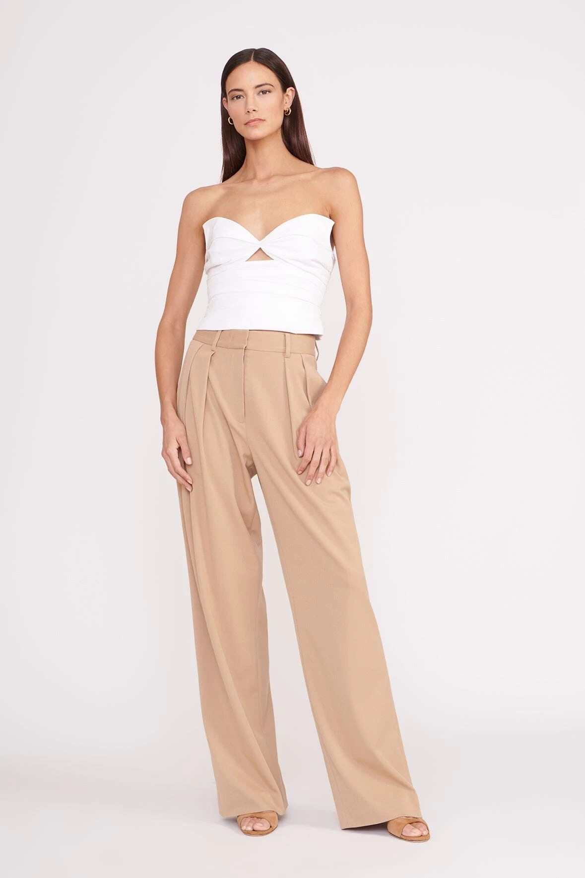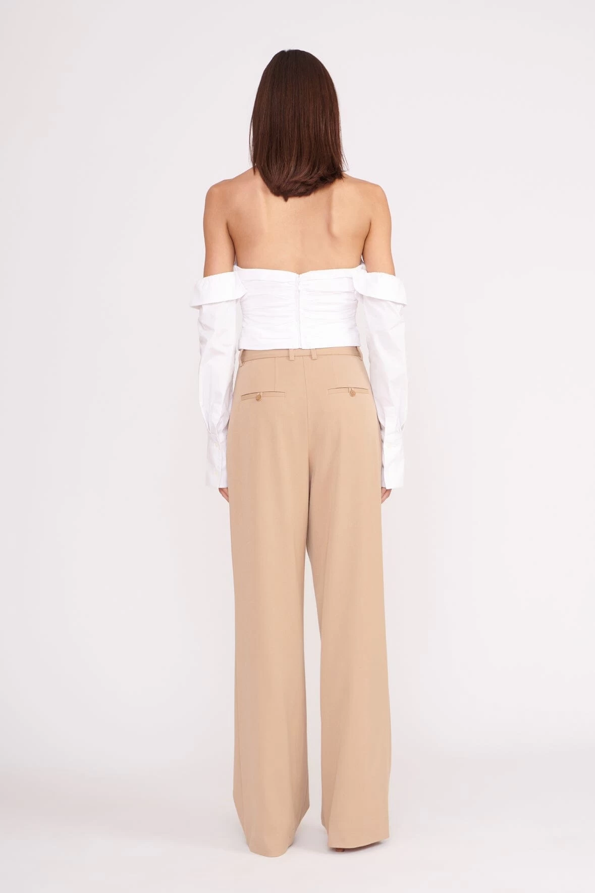A strapless corset top made out of our slightly stretchy cotton poplin fabric. This style features fully removable sleeves, pointed cup details and a gathered bodice.