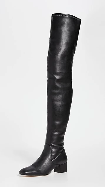 Bold and timelessly cool, a pair of over-the-knee boots is a must for every wardrobe. This pair from STAUD keeps things simple with a block heel and unembellished, jet-black faux leather.