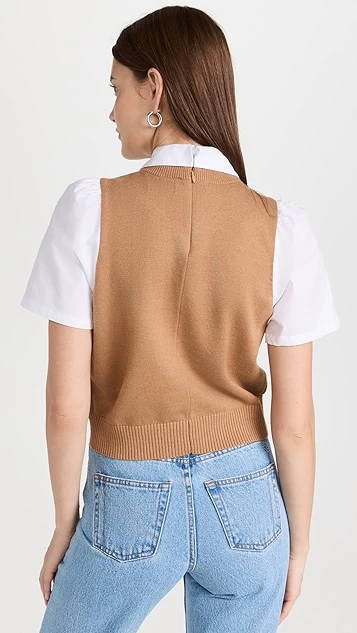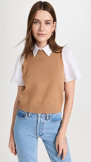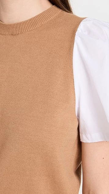 Soft cotton-blend yarn combines with crisp white poplin to create this hybrid STAUD top. This piece will pair well with polished trousers, but also won’t look out of place when matched with your favorite denim.