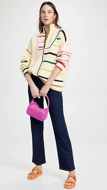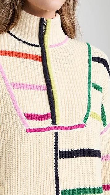 Add a stand-out piece to your knitwear collection with this STAUD half-zip sweater, which draws the eye with an eclectic mix of stripes in a bright mix of colors.