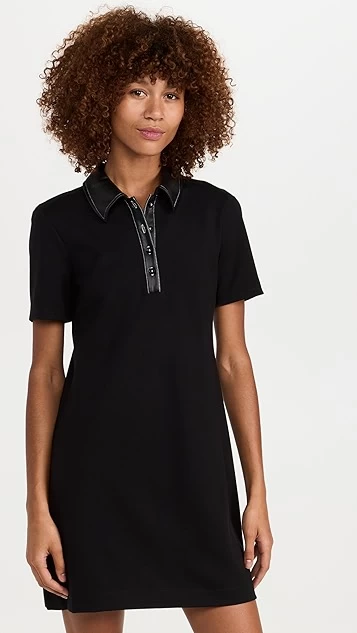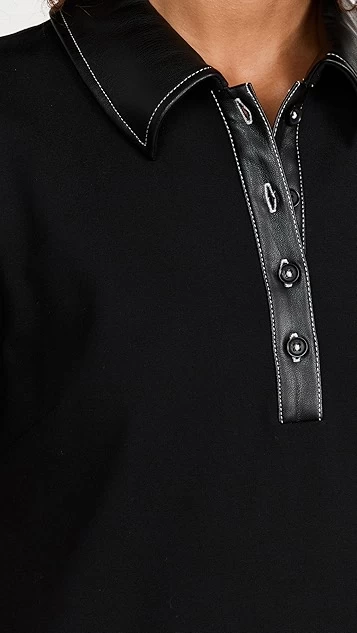 A classic STAUD polo dress with a subtle touch of signature style, which comes courtesy of a tonal faux-leather collar with understated contrast stitching.