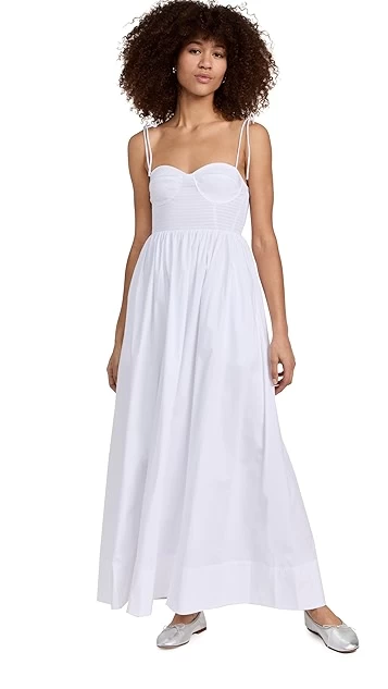 With its formfitting, carefully smocked bodice and voluminous, free-flowing skirt, this STAUD dress offers a timelessly stylish blend of proportions. Keep your look understated by pairing this piece with tonal footwear.