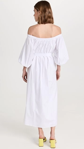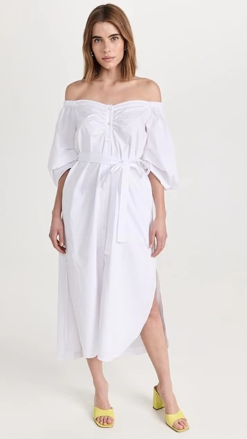 An understated take on off-shoulder style, this neutrally colored STAUD dress is crafted from crisp poplin, and is styled with waist-defining ties. Just add a heeled slide sandal to complete your outfit.