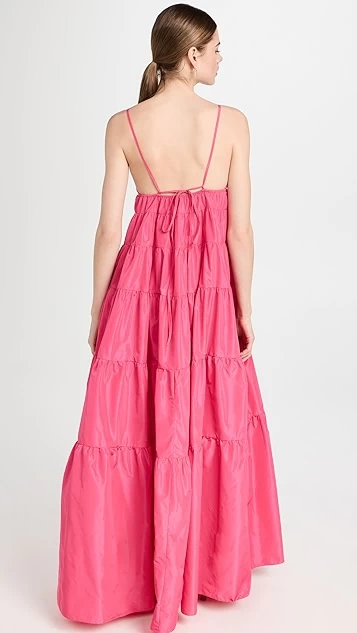 Crisp, timelessly romantic pink taffeta gets the spotlight with this STAUD dress, which features a sleek fit through the empire waist before finishing with a tiered, extra-voluminous skirt. Add gold earrings a tonal pair of heels to round out your special-occasion ensemble.