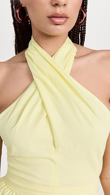 - Crisscross halter neckline with tie closure