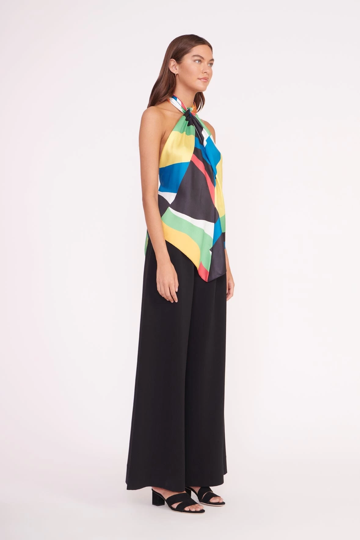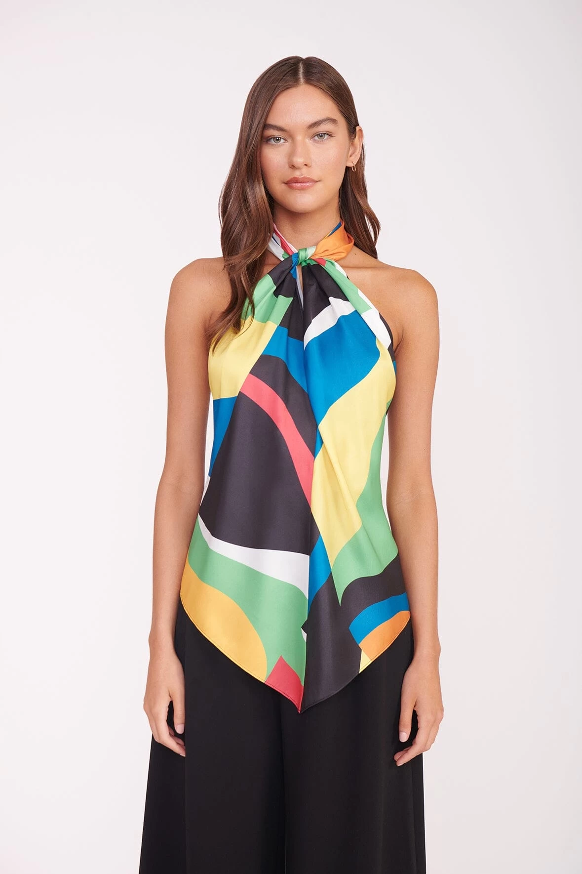 The Tropea Top is a halter top that ties at the neck, featuring a handkerchief hem and an elastic back for an easy fit. This Summer top is featured in our Marble Wave print.