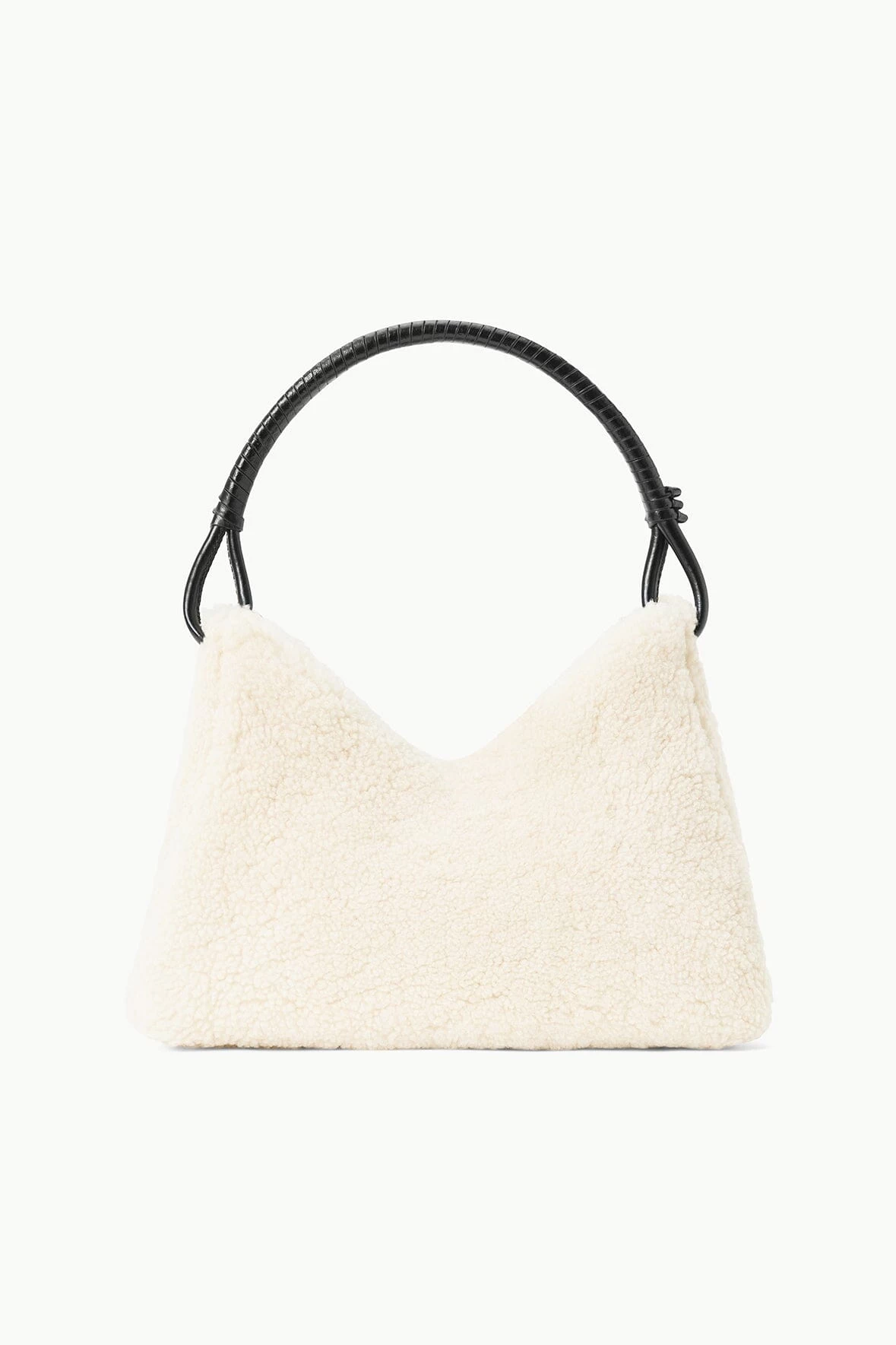 A minimal shoulder bag with removable crossbody strap, the Valerie features our signature hand-wrapped and knotted handle detailing. This style is updated in cream shearling.