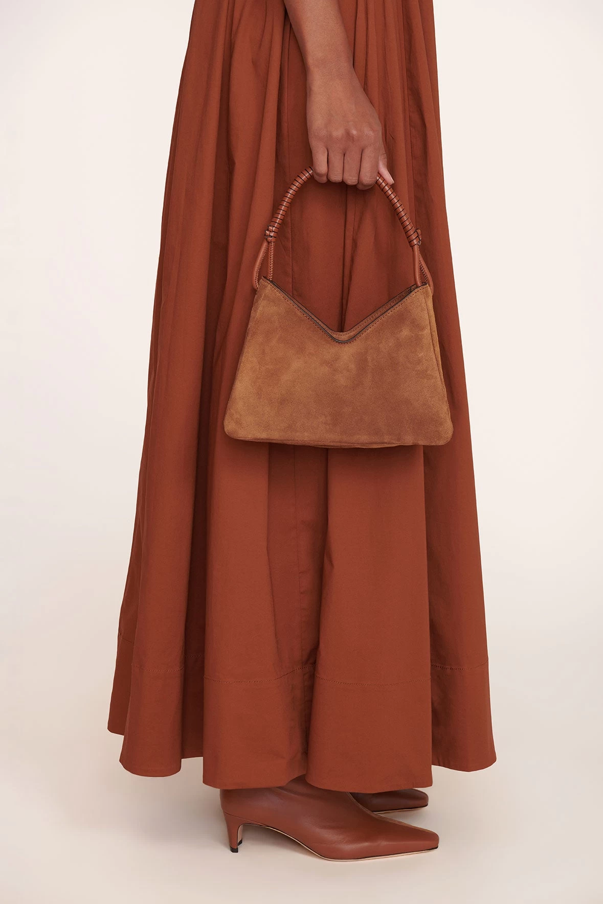 A minimal shoulder bag with removable crossbody strap, the Valerie features our signature hand-wrapped and knotted handle detailing. This style is lined with a moire fabric and features a zip closure.