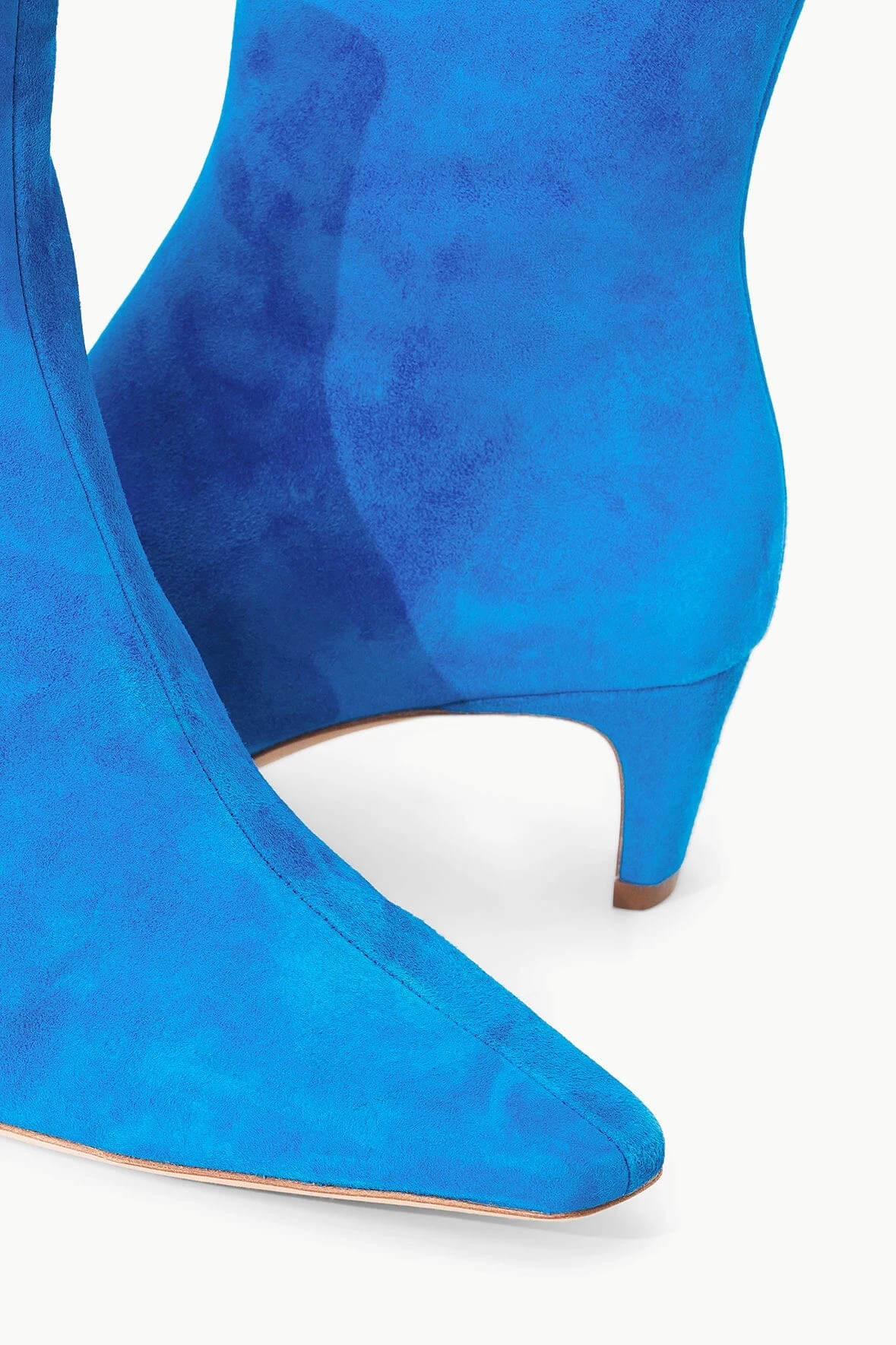 A suede ankle boot, this style features a pointed rectangular toe and a blade heel. The Wally Ankle boot features a side zip closure.