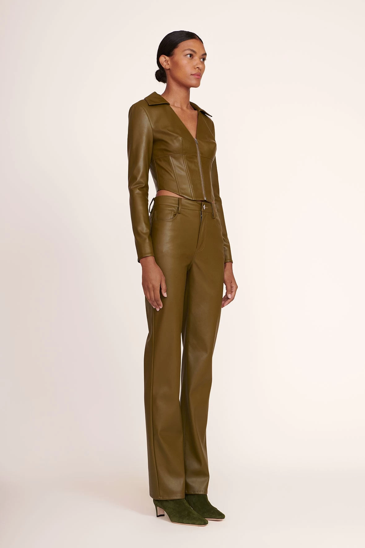 A suede ankle boot, this style features a pointed rectangular toe and a blade heel. The Wally Ankle boot features a side zip closure.